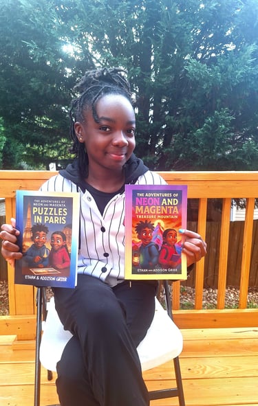 "The Adventures of Neon and Magenta” is a vibrant chapter book series created by a talented sibling duo, a 11-year-old and a 14-year-old brother and sister who teamed up to write stories that spark imagination, friendship, and fun. Together, they bring their characters to life through mystery-filled adventures, colorful worlds, and brave problem-solving. This series proves that kids can be amazing authors too and that great stories can come straight from young hearts and big ideas!